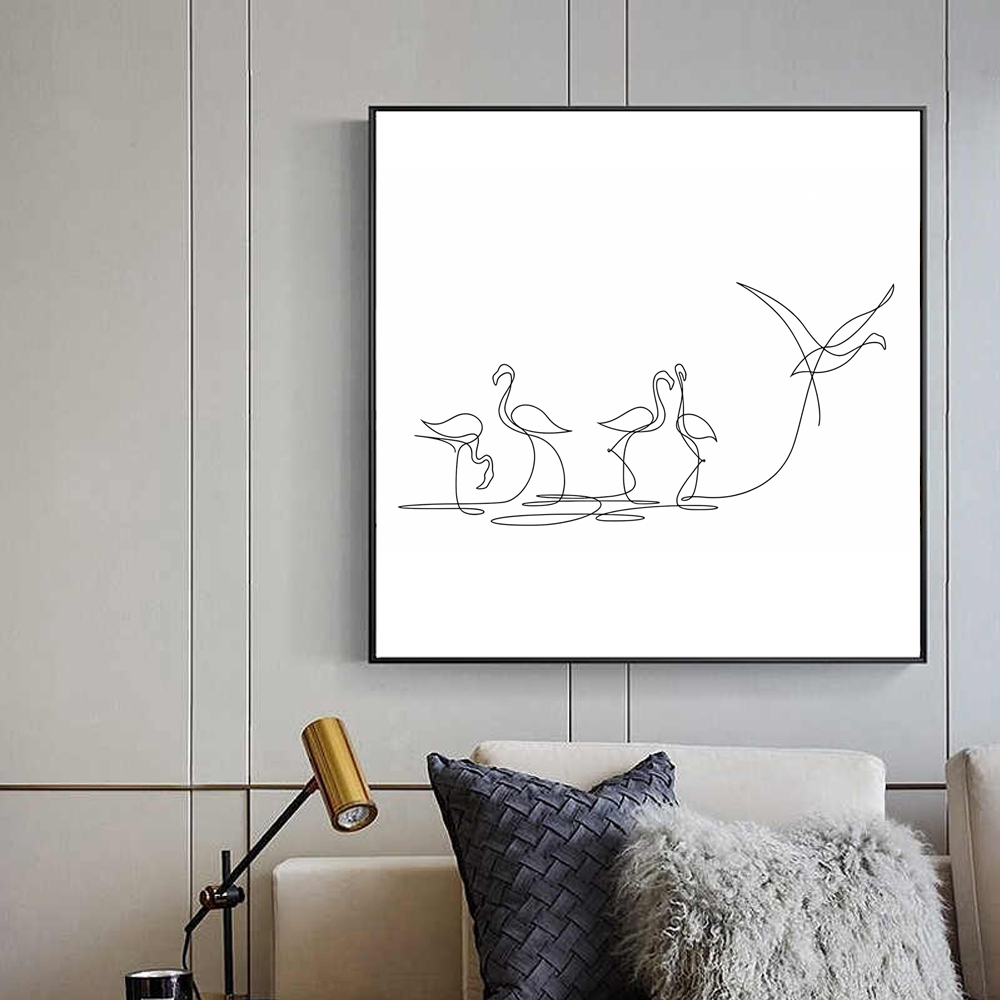 + Free ShippingAn art deco piece featuring flamingos but presented in black and white colors. This kind of wall art highlights the unique form and line beauty of the flamingo through the simple black and white contrast, showing a simple but elegant art style.