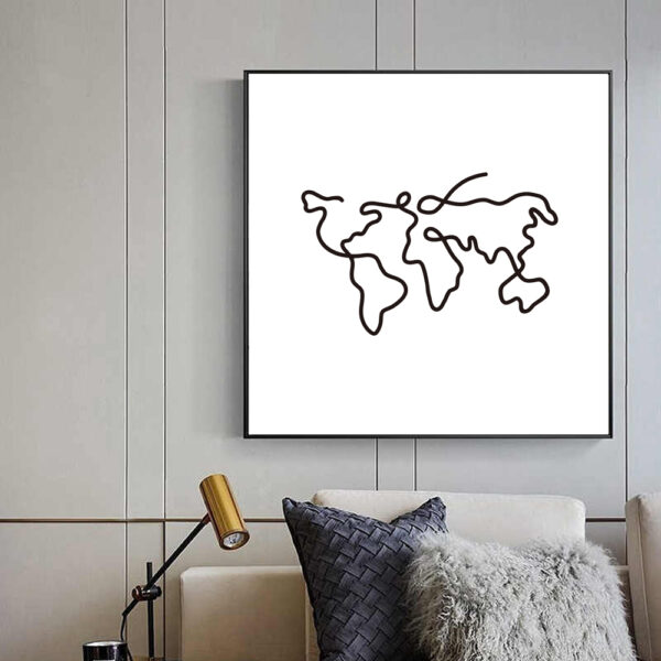 The entire painting creates a serene and profound atmosphere through clean lines and a muted background. Whether it is used for educational presentations or home decoration, this world map line drawing can attract people’s attention and inspire them to explore and think about the world with its unique artistic charm.